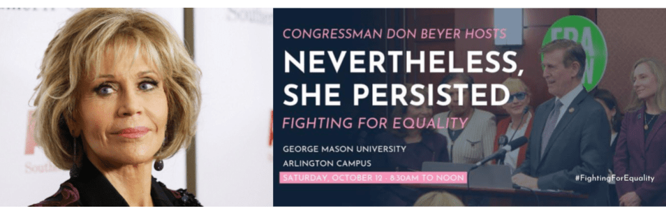 The ERA Coalition will be in Virginia this month, working with organizations on the ground, and participating in two major gatherings: tomorrow, October 12th in Arlington, Representative and Megan Beyer’s 5th Annual Women’s Conference. Our Advisory Council member Jane Fonda will be the keynote guest, and I will participate in a conversation with Megan Beyer, and other leaders speaking on the need for equality.
