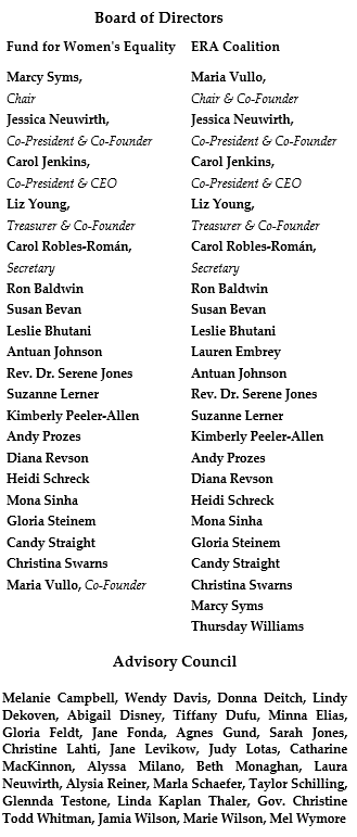 Thanks to activists on the ground and legislators in states and Congress–and you–we are about to cross the ERA finish line. We are honored to be a part of this great quest for equality.