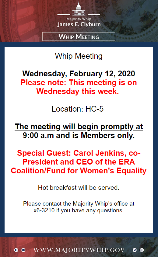 We were honored to be invited to speak at Majority Whip James Clyburn’s Democratic Caucus Breakfast on Wednesday morning with many legislators attending. My ten year old granddaughter Avery, who started her lobbying for the ERA when she was seven, joined us for the historic events this week. Speaker Pelosi’s words to Avery:” This is all about you, Avery.” It is all about the equal future millions of girls in our country will have once we give them a place in the Constitution. My remarks to the Caucus are here.