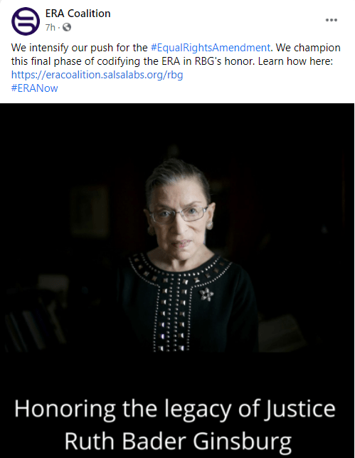 4. DONATE: Support our work to honor the legacy of Justice Ruth Bader Ginsburg and see the ERA adopted to the U.S. Constitution. Donate here: www.eracoalition.org/donate