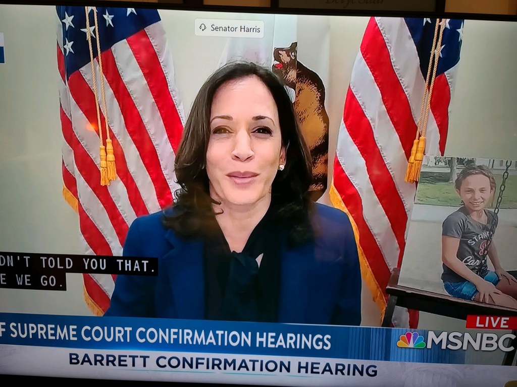 On this day we are also watching the confirmation hearing of Judge Amy Coney Barrett in the Senate Judiciary Committee. Participating in those hearings, Senator Kamala Harris, Democratic candidate for Vice President of the United States. So much of what we care about is at stake here.
