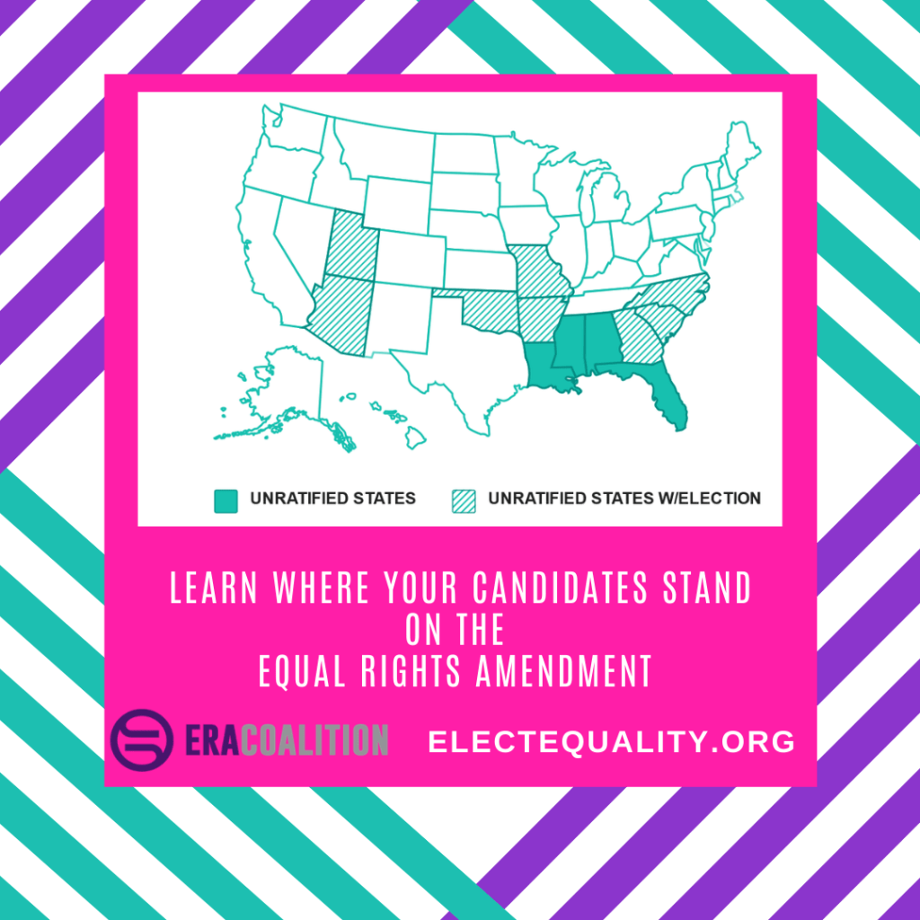 We are just 12 days away from an election that could determine the fate of the Equal Rights Amendment. What is at stake? Legal and lived equality for all women and girls, transgender and non-binary individuals. It is crucial that voters know if their candidates are pro-equality when they enter the ballot box on November 3rd.