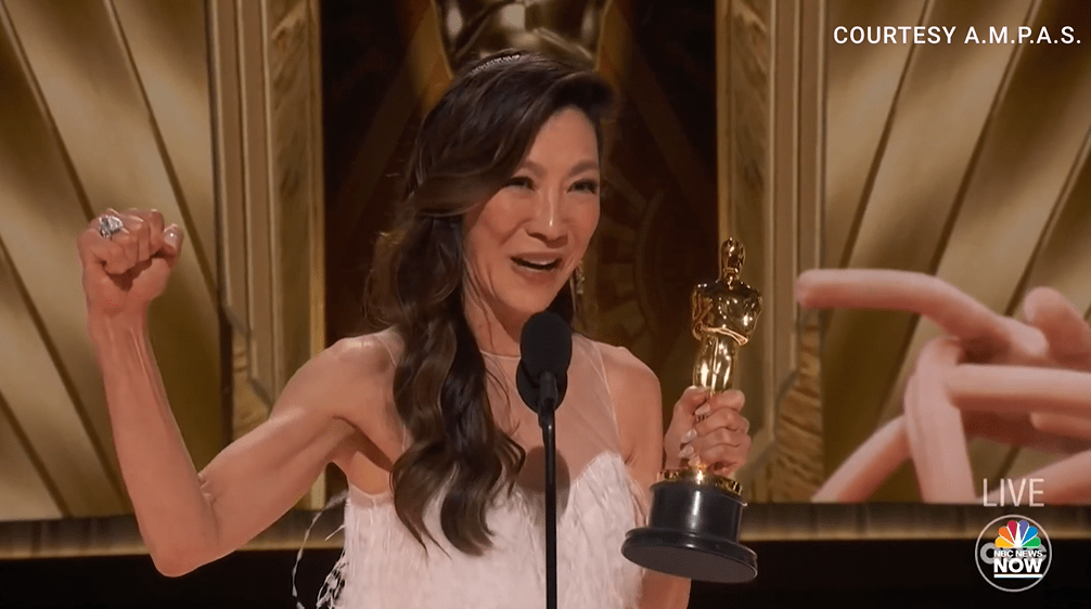 Michelle Yeoh became the first Asian woman to win Best Actress. Although Yeoh is best known for her roles in Tomorrow Never Dies (1997), Crouching Tiger, Hidden Dragon (2000), Crazy Rich Asians (2018), and now Everything Everywhere All at Once (2022), this is her first Oscar nomination. She was presented with the award by Halle Berry, who was the first woman of color to win Best Actress 21 years ago. With this historic win, Michelle Yeoh has become the first Asian woman and just the second woman of color to win the Best Actress award.